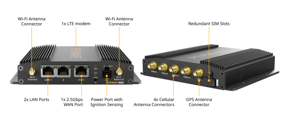 - Modem: 1× LTE-A Pro Modem (Global / CAT-20) with Redundant SIM Slots